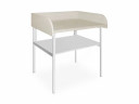 Конструкция из алюминиевого сплава с полимерным покрытием защищена от коррозии. Опоры для фиксации на бортах ванны оснащены нескользящей поверхность. Сиденье выполнено из высокопрочного пластика и оснащено дренажными отверстиями для стока воды. Подлокотники съемные, оснащены мягкими накладками. Спинка сиденья складная.