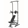 В комплекте идет прямая скамья. С помощью парных крючков на раме турника возможно установить скамью под разным углом для выполнения различных упражнений.